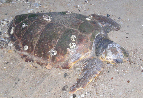 A dead loggerhead sea turtle recently found on a Sound beach may have lingered in local waters too long during the autumn change of seasons.