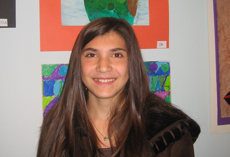 Melissa Germain, 12, of Shoreham, also a seventh-grader, drew a self-portrait with oil pastels. For the background, she used cold colors like browns, blacks and greys, while she painted the portrait with warm yellows, reds and pinks. She loves to draw anime figurines, and she said the techniques for those drawings trickled into her self-portrait as she splashed shimmery tones over the irises of the eyes in the picture.