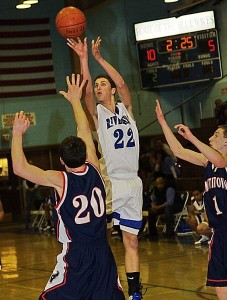 Smithtown West closed out the first half on a 10-0 run to cut Riverhead’s lead to three points at 22-19. Then the Bulls opened the third quarter with three straight baskets by Joseph, Hickey (a three-pointer) and Schultz to take the lead for good. Riverhead did tie the score at 42-42 on a foul-line jumper by Brandon Tolliver, but Smithtown West surged ahead again.