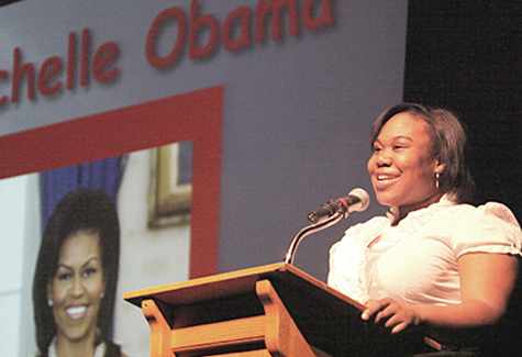 The First Baptist Church Dance Group lead the ceremony with a dance, followed by a series of biographical overviews of famous black Americans, poetry readings and famous orations from students and community members
