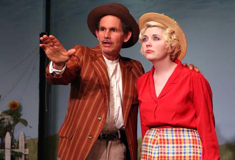 One of the more thrilling things about musical theater is the sound of a full chorus and the chorus at the NFCT is wonderful — there’s no other word. We happily accept the convention of a crowd singing the same lyrics, presumably having all had exactly the same thought at the same time and Michael Horn, Sherry Beodeker, Ryan Beodeker and all of the farmers and cowboys in the large cast are marvelous.