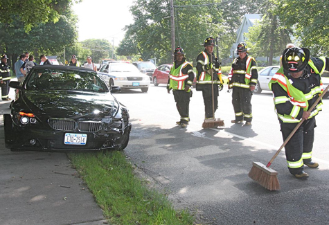 Riverhead Police Officer Jonathan Deveaux responded along with the Jamesport Fire Department after receiving a report of an accident between a westbound 2005 BMW and a eastbound 2010 Toyota Camry.