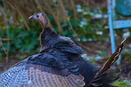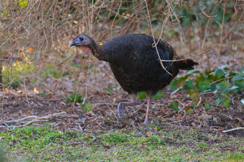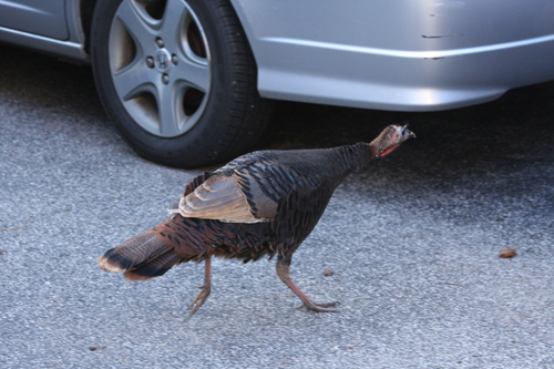 Ms. Gromadzki said she first saw the turkey about six days ago, when her Boston Terrier, Daisy, was playing in the bushes. Suddenly, she said, the turkey jumped out of the bush and strutted across the yard.