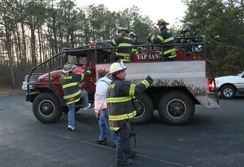 The Yapank fire broke out about 5:30 p.m. just north of the Long Island Expressway and just west of the William Floyd Parkway. Local firefighters from Wading River, Manorville and Rocky Point joined seven other departments to help battle the fire.