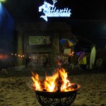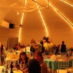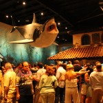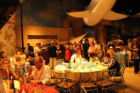 The aquarium was turned into the setting for a beach party, complete with sand poured at the entrance and torches. There were hot dogs, hamburgers and beach umbrellas.