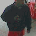The man was described as black and with dark, cropped hair. He was wearing a black jacket and red sweatpants in a surveillance photo of the incident released by police. He was last seen fleeing the scene in a red Chevrolet Impala that was waiting outside the store.