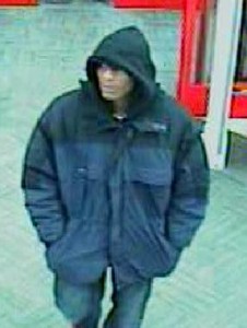 Police released an image of the man taken from the store’s surveillance tapes. He is described as 5-foot-8, black, and about 25 to 30 years old. He was wearing a dark-colored hooded jacket at the time he left the store and then fled the area on foot through the parking lot.