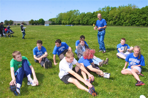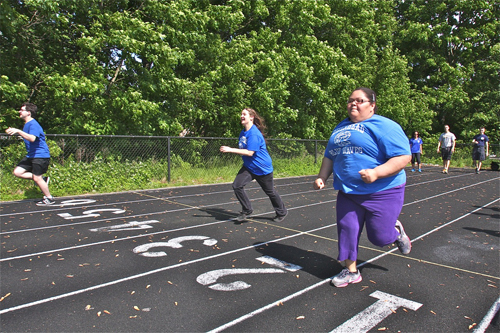 Many of the students donned blue Riverhead T-shirts during the track meet.