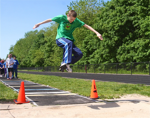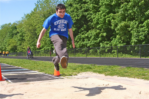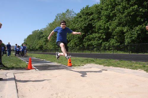 Christopher Thompsen had just finished sprinting down the runway and vaulting himself into the sandy pit at Riverhead High School when track coach Maria Dounelis congratulated him on his long jump.