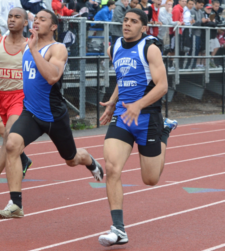 Riverhead junior Jeff Pittman won the 200-meter dash Wednesday afternoon at the Division II Championship at Comsewogue High School as the Blue Waves finished sixth as a team with 56 points.