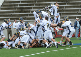 June 9: The boys lacrosse team lost its All-American midfielder Trevor Brosco only 13 seconds into the state finals against Penn Yan at Middletown High School. But junior Tim Rotanz was there to help pick up the slack with five goals and lift the Wildcats to a 10-6 victory and the team’s first state championship since 2007. http://tinyurl.com/7syh5kx