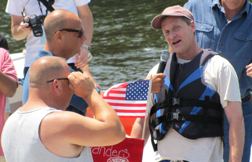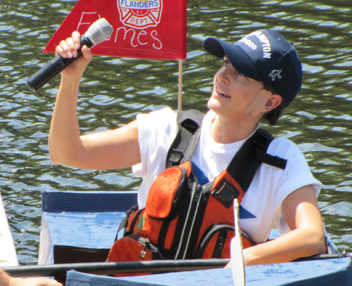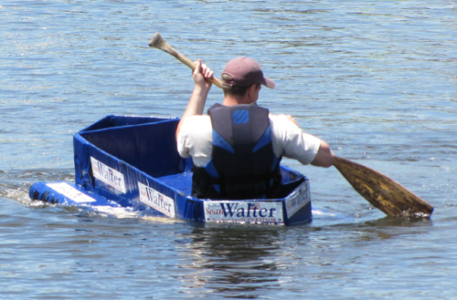 The Peconic River divides Riverhead from Southampton Town. So it’s the perfect place for the two town supervisors to get into carboard boats and have a race.