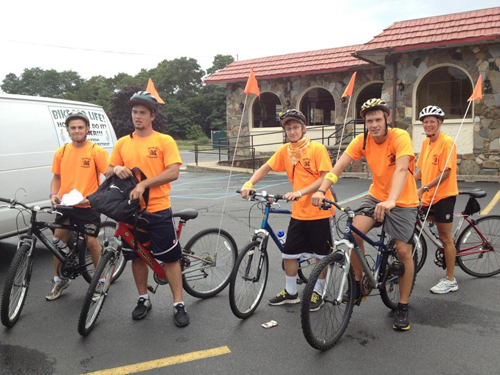 The group was relaxing Thursday afternoon at St. Patrick’s Church in Southold after a morning bike ride from Port Jefferson through a summer storm. The riders’ shirts, each one bright orange with the words “Bike for Life” inked on it, lay hanging on a railing while the students played frisbee on the lawn.
