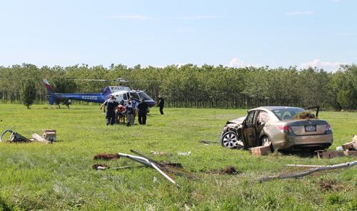 Riverhead firefighters, ambulance volunteers, and town fire marshals responded to the crash site, where fire crews cut off the sedan’s door to free Mr. McCoy, fire officials said.