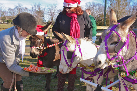The weather outside wasn’t frightful but the mood was certainly delightful as four donkeys, two horses and eight humans took to caroling on Church Lane in Aquebogue as heralds of the holiday season for the second year in a row Saturday afternoon.
