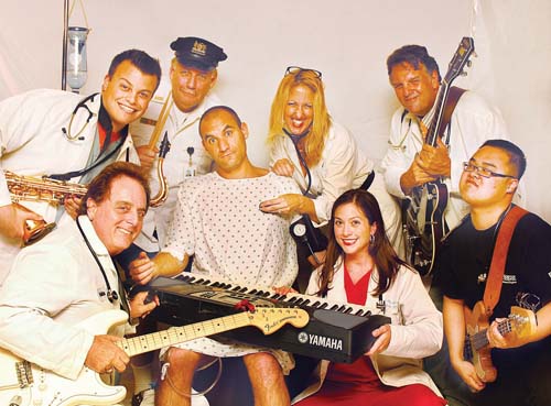 Dr. Francis Yoo, another resident, plays base guitar and Dr. Raymond Mantovani, a pulmonologist, plays electric guitar. Steve Ormond, director of security, backs them all up on the drums. He has been playing since he was 3 years old. Dr. Argiro plays the saxophone, and speech pathologist Dr. John Amado supports the band on vocals and guitar.
