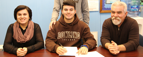 St. John’s, Adelphi and Queens College were also under consideration, but Antunes made his final decision official with some strokes of a pen during a signing ceremony at the office of Riverhead High School’s principal, Charles Regan.