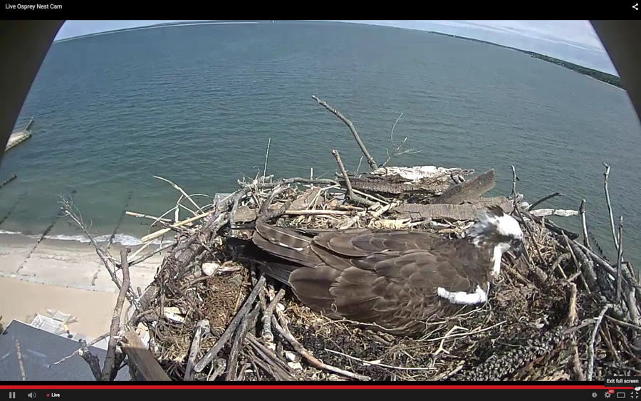 Osprey Zone also features saved videos. The one- to two-minute long clips feature the birds returning to the nest with a fish, guarding the eggs, communicating with each other and more.
