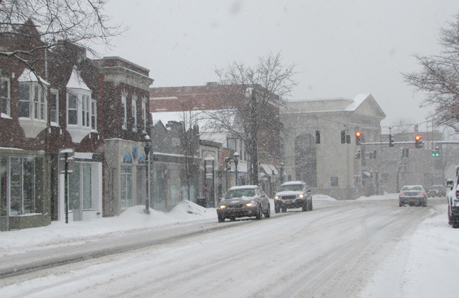 Photo Caption: Snowy downtown Riverhead in March 2015. (Credit: Tim Gannon, file)