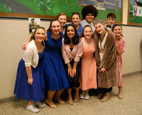Caption: Senior cast members from Riverhead High School’s production of “Bye Bye Birdie” following Sunday’s performance.