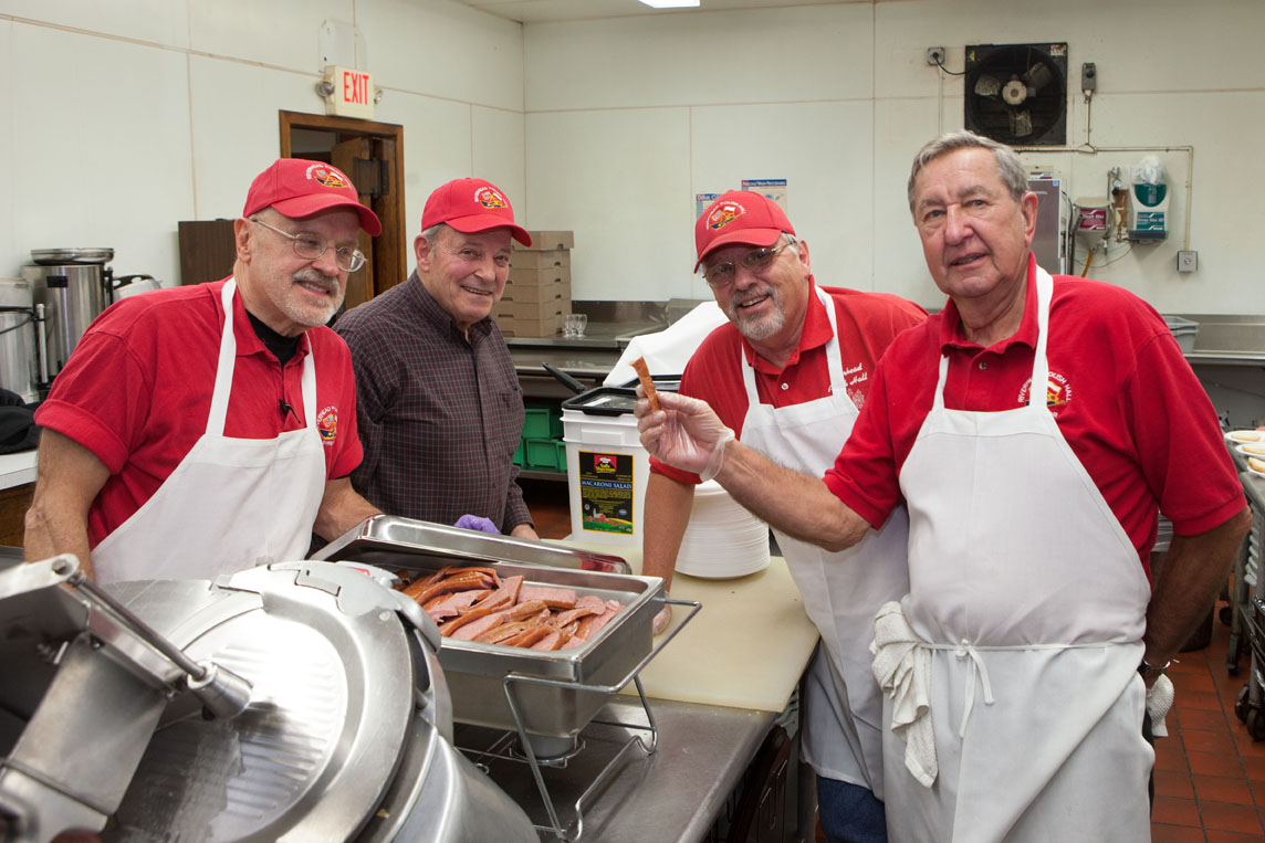 Cooking for a crowd (from left): Mike Osip, Bob Bugdin, Wes Slovanik and Zenon Czujko.