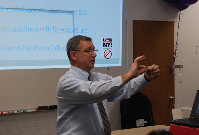 Following the speeches from Michael’s HOPE, Robert Delagi, EMS Coordinator for the Suffolk County Department of Health Services, gave an educational presentation about the affects of Narcan, when it can and can’t effectively be used, and how to correctly administer the medicine.