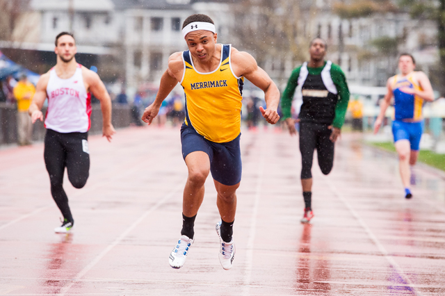 Photo Caption: Jacob Robinson competes for Merrimack University as a sprinter on the track team. (Credit: Merrimack Athletics)