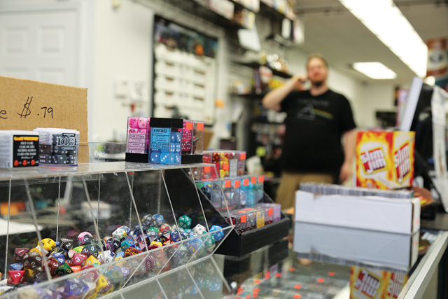 Photo Caption: Gaming dice on display at The War Store Hobby Center in downtown Riverhead. After three years in Riverhead, the shop will close early next month and move to Middle Island. (Credit: Paul Squire)