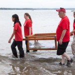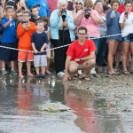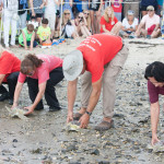 Hundreds of spectators and dozens of volunteers gathered on a small beach in the shadow of the Ponquogue Bridge in Hampton Bays for the event.