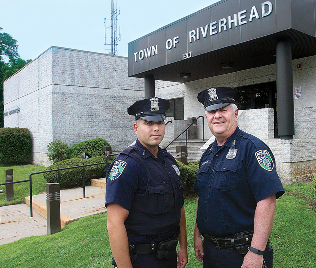 Riverhead Town police officer Anthony Montalbano has only been on the force since 2013, but he already had something in common with 35-year veteran officer James Lydon before Sunday afternoon.