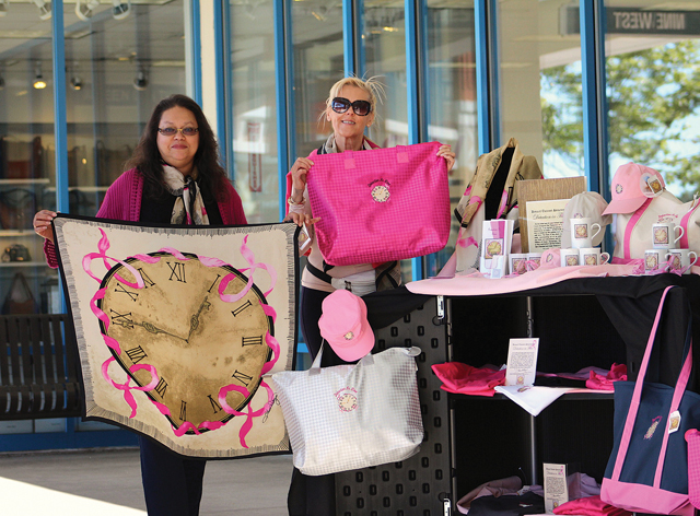 File photo: Southold resident and cancer survivor Shawn Widmyer-Natale (right) is the owner of Detection in Time, a fashion line that raises awareness for breast cancer. She’s pictured with her business partner, Debra McDonald, whose mother died from breast cancer. (Credit: Elizabeth Wagner)