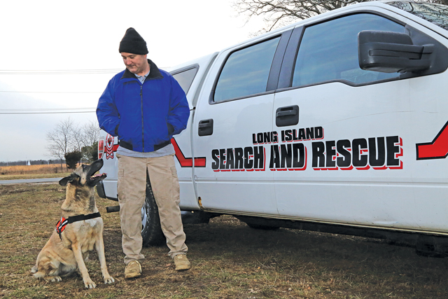 Top photo caption: Chris Padden and his dog, Keli, have helped on search-and-rescue missions around Long Island and in surrounding states. (Credit: Kelly Zegers)