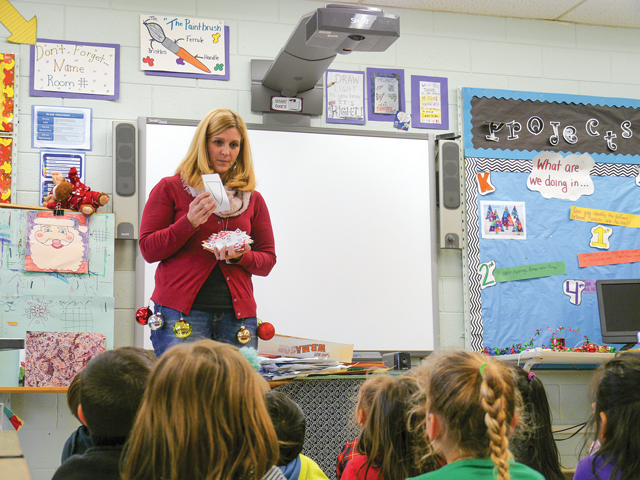 Top file photo: Riley Avenue Elementary School art teacher Melissa Haupt gives kindergartners instructions for a holiday project. (Credit: Krysten Massa)