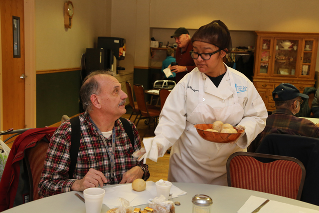 In the meantime, special needs high school students from the BOCES food preparation program visit the center every Monday to volunteer in the kitchen.