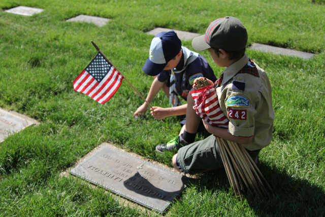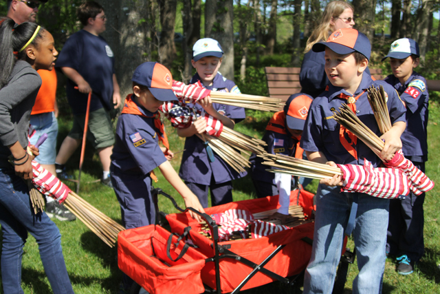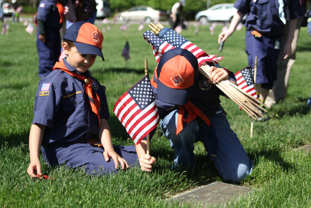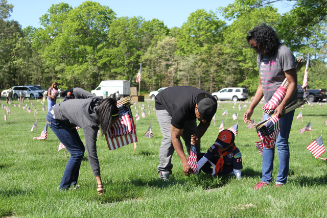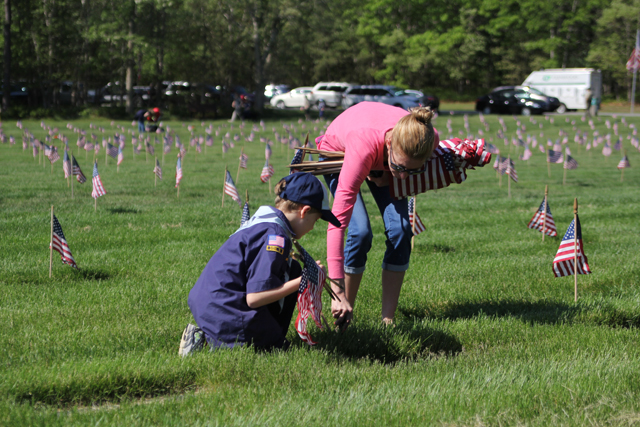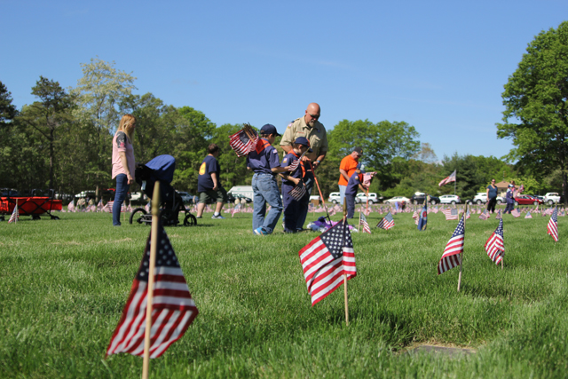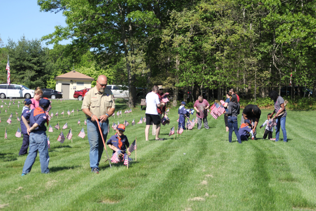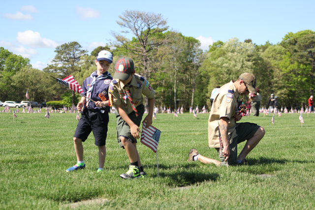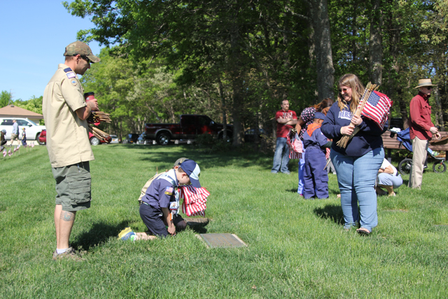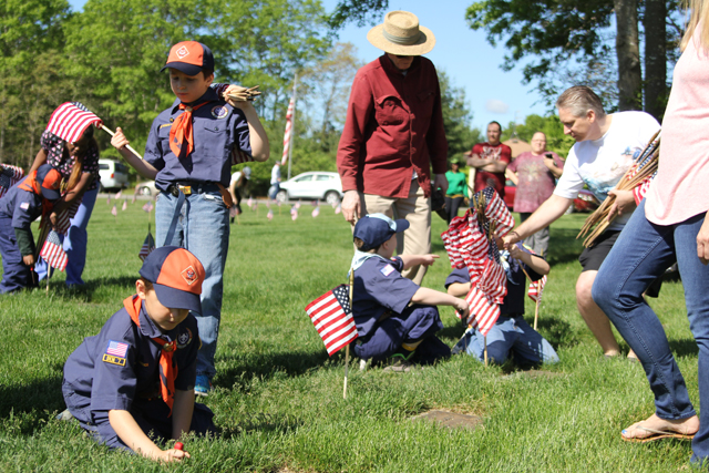 The Riverhead Cub Scout Pack 242 was one of many volunteer groups to place American flags on graves Saturday morning at Calverton National Cemetery in honor of Memorial Day.