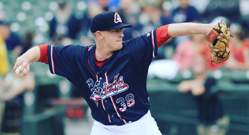 Photo caption: Mike O’Reilly pitching for the Peoria Chiefs, for whom he went 9-2, with a 1.75 ERA this season. (Credit: courtesy photo)