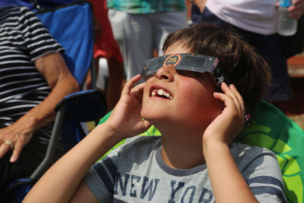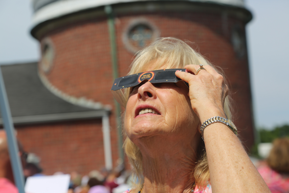 Photo caption: Vito Piché of Aquebogue glances up at the eclipse. (Credit: Kelly Zegers)