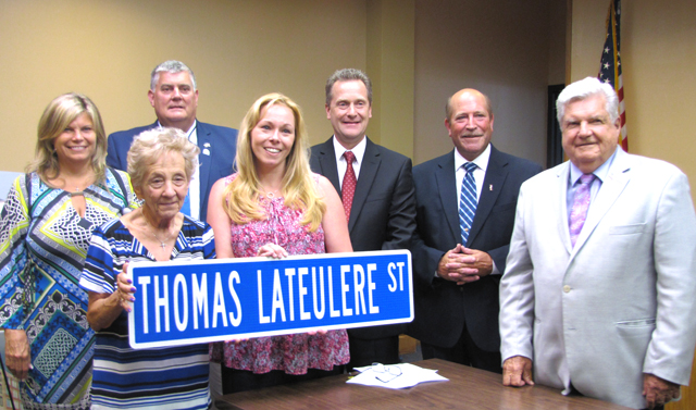 Mr. Lateulere’s mother, Joann, and his girlfriend, Raegin Kellerman, were on hand Tuesday to pose for pictures with the new “Thomas Lateulere Street” sign, which will be installed soon. Mr. Lateulere grew up on 20th Street.
