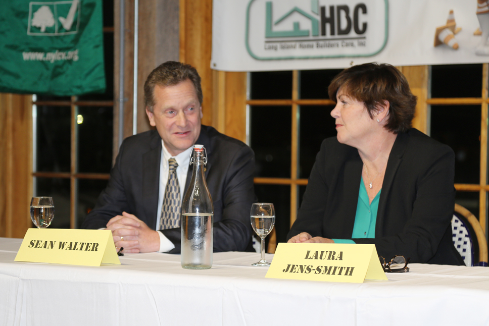 Incumbent Republican Supervisor Sean Walter and his Democratic challenger, Laura Jens-Smith, had vastly different opinions on many of the same issues in Riverhead Town during a candidate forum Thursday night at Martha Clara Vineyards.