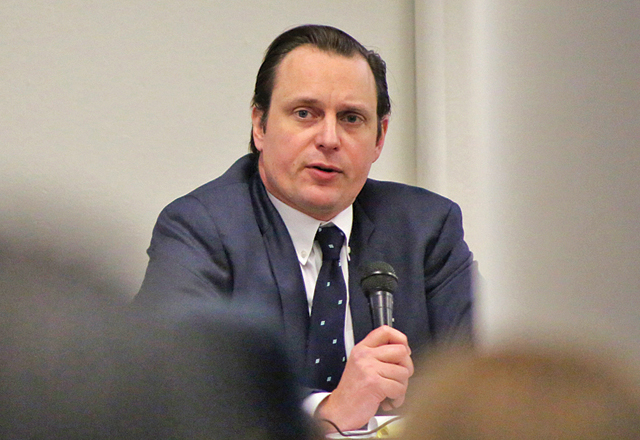 Top caption: Mr. Worth at last week’s meeting. (Credit: Kelly Zegers)