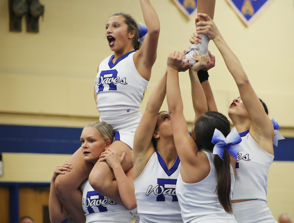It’s been a banner year for the Blue Waves, who recently finished 14th in their division at the Universal Cheerleaders Association High School National Championships in Orlando, Fla. They won two UCA regionals leading up to nationals.