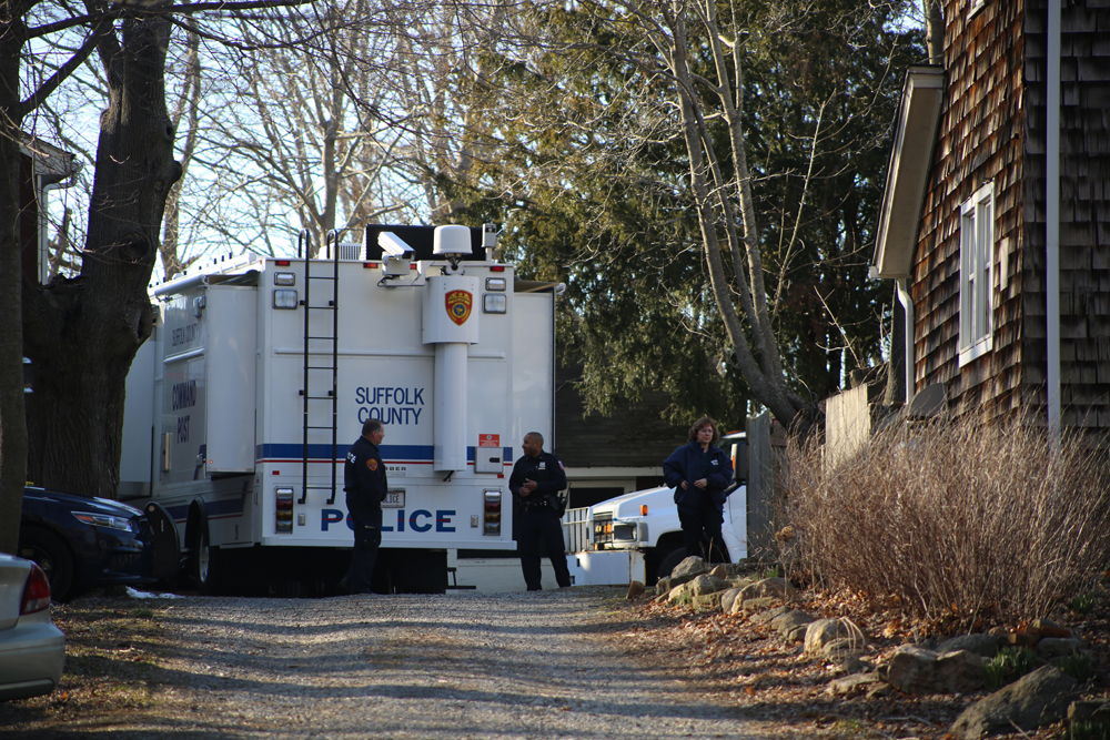Top photo caption: Suffolk County police on scene at the home on Lower Road Monday. (Credit: Krysten Massa)