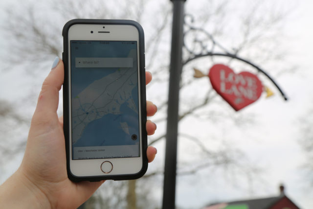 Photo caption: A cell phone with the Uber app displayed in Mattituck. (Credit: Kelly Zegers)