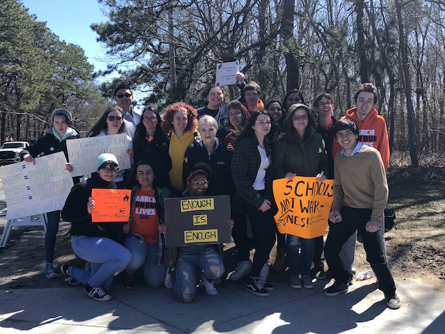 About 20 students from Shoreham-Wading River High School on Friday joined thousands of their peers across the country in a school walkout, serving as a call for an end to gun violence, in and out of schools.