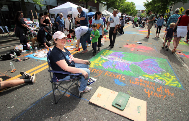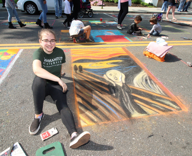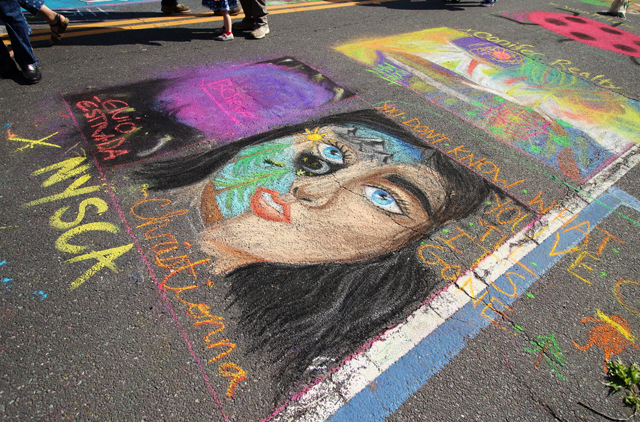 Chalk covered hands of all ages helped paint the town during the 22nd annual Community Mosaic Street Painting Festival in Riverhead Monday.