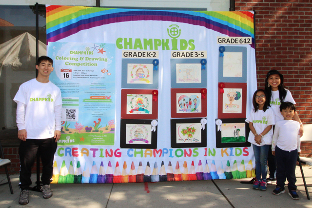 For CHAMPKIDS of Great Neck: Fenella Kim, Branson Kim, Daniel Lee (events coordinator), and Allena Kim (CHAMPKIDS inspiration). CHAMPKIDS is hosting a coloring and drawing competition at the Long Island Aquarium Saturday June 16 with discounted admission for family and friends.