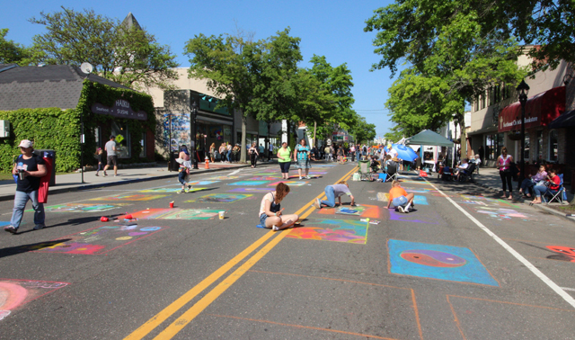 Main Street in Riverhead during the East End Arts Mosaic Street Painting Festival.