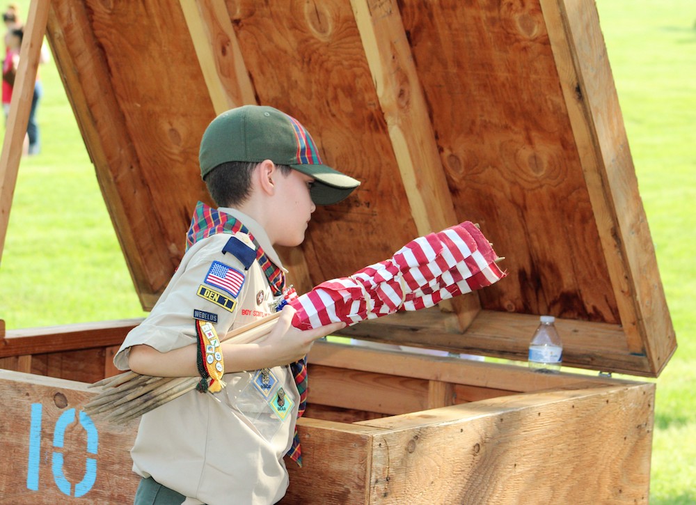 The Riverhead Cub Scout Pack 242 was one of many volunteer groups to place American flags on graves Saturday at Calverton National Cemetery in honor of Memorial Day.