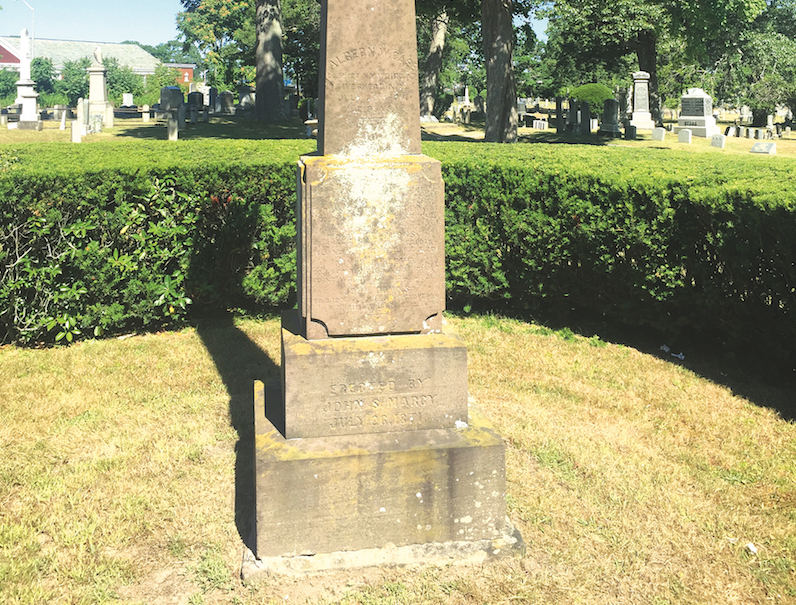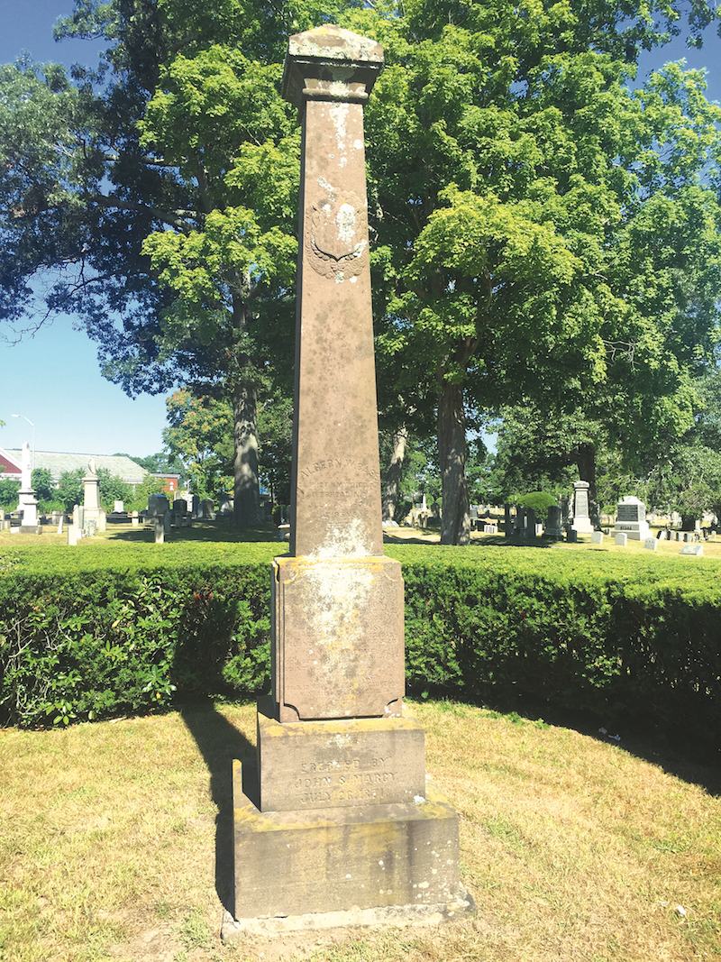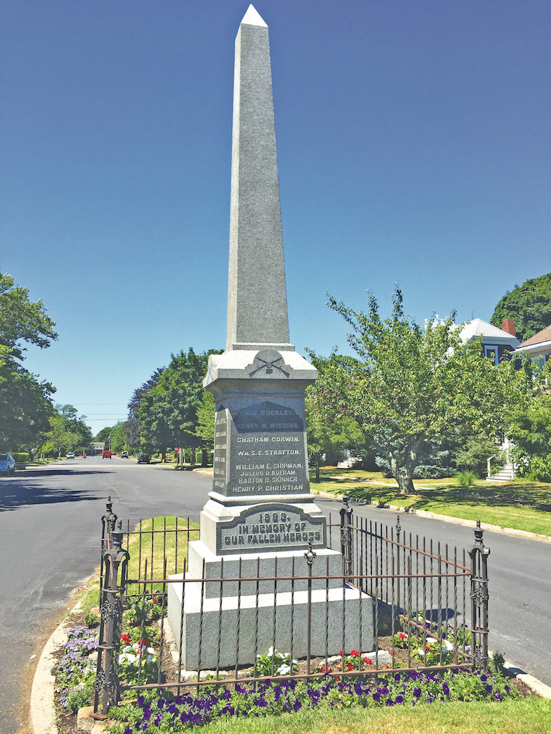 Photo caption: The sandstone obelisk bearing the names of Riverhead’s Civil War veterans in the Riverhead cemetery. (Bob Liepa photo)