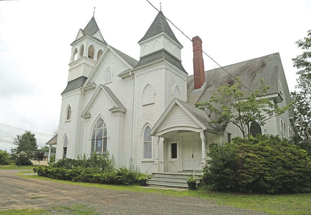 Photo caption: The church at the corner of Church Lane and Sound Avenue in Northville is up for sale. The former First Parish Church was declared a town landmark in 1981. (Rachel Siford photo)